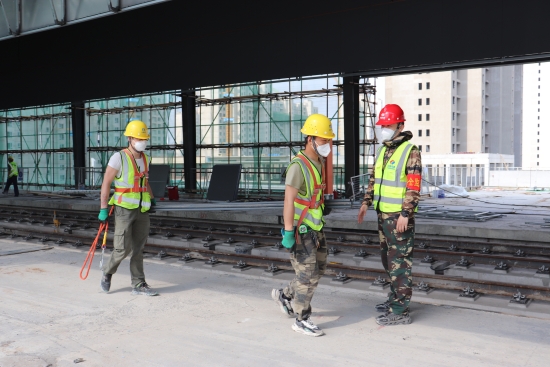 见到切割材料的工人就会上前提醒“注意小心火花飞溅!别烧坏电线!别切到手!”,见到电焊工人就会上前提醒“注意焊渣掉落别伤人!”见到起重吊车运作就会上前提醒“司机师傅注意安全,观察周围环境,稳稳的!”见到搬运工人......年轻的帅小伙却是个“婆婆嘴”,巡查到哪就提醒到哪,眼疾嘴快,乐此不疲。4号线南延线全长4.485公里,由水电一局广州轨道4号线南延项目承建的延线长度为2.17公里,共三站三区间,安全巡查人员每天至少要在项目延线上巡查2次,手机计步软件上经常显示的是以万打底,3字开头的数字。