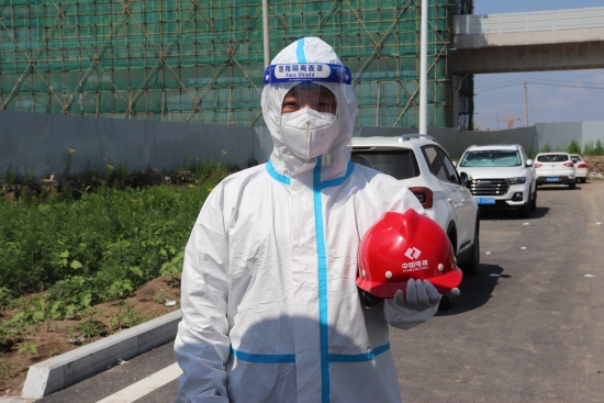 自5月初项目复工复产到现在,他坚持每天配合十里堡村社区完成前十里堡至何家屯区间人员核酸检测工作。比其它人员提早一些,每天清晨6点45准时到岗,开始忙碌着项目部现场施工人员入场前的测温、登记以及施工环境的消杀工作。8点半开始布置社区核酸检测现场,支帐篷、划一米线、扫码、统计登记......200余人的核酸,就这样渡过了40余个充实的上午时间,而且还在继续。东北五六月的天,冷热晴雨变化无常,防护服密不透风,有时冷风习习,有时大汗淋漓;N95口罩把脸勒出深深的印痕;戴着一次性手套的双手经常也被汗水浸泡得发白。